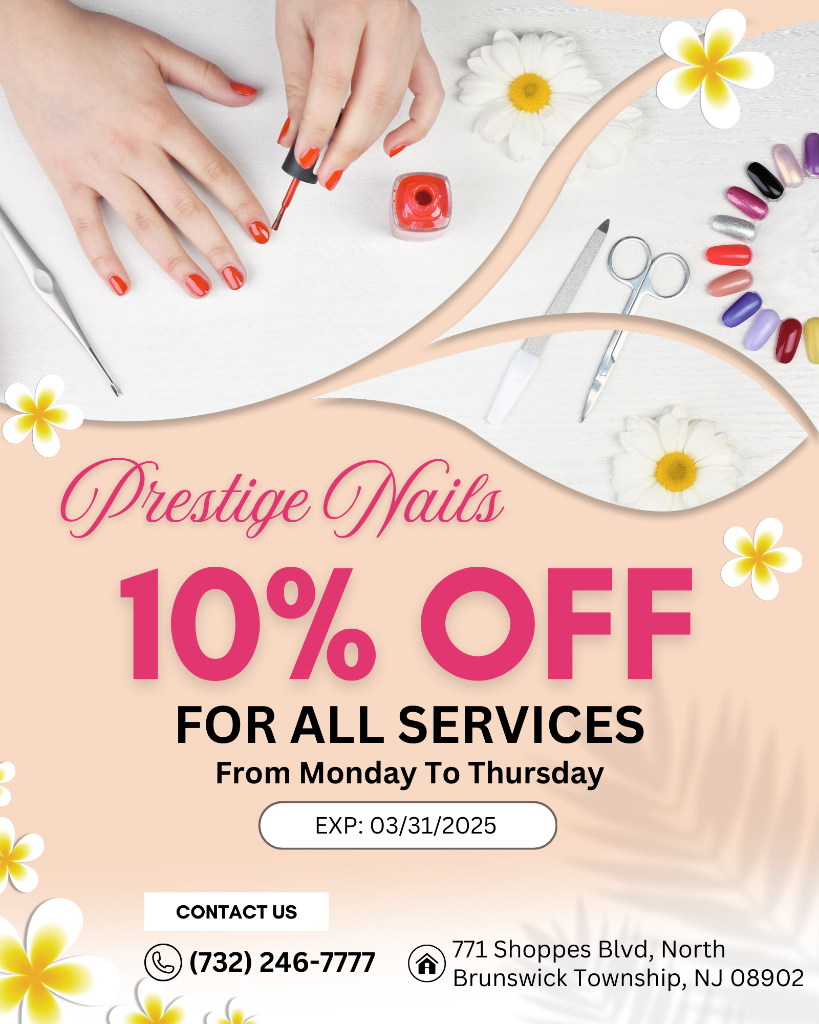 Located conveniently in North Brunswick Townsh, our nail salon pleased to provide the clean and welcome atmosphere, which will make you freely enjoy the relax moments and escape from all of life’s pressure to make the most of wonderful time.